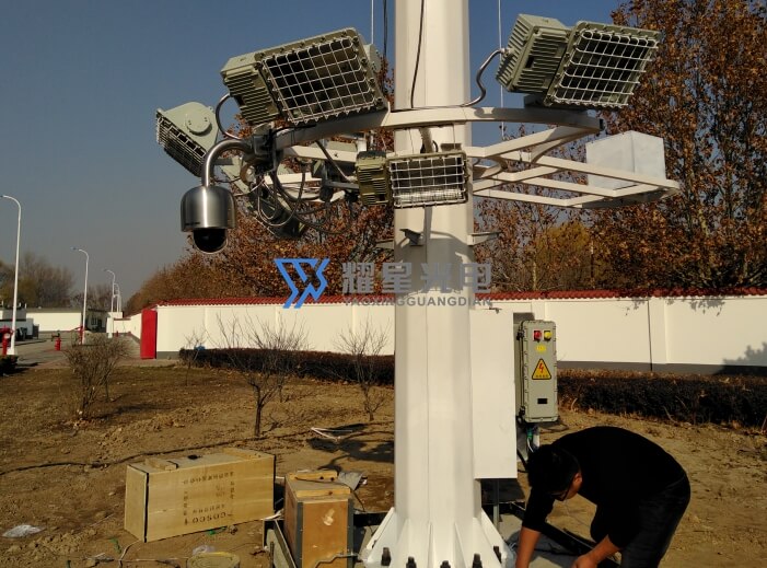 北京市順義區中國石油氣站總站場區25米防爆高桿燈,高桿燈共配置6盞防爆燈(共4800W),和一套360°防爆高清攝像頭,高桿燈的行程開關、電器板均采用防爆材質,所有接線點均由防爆箱保護。