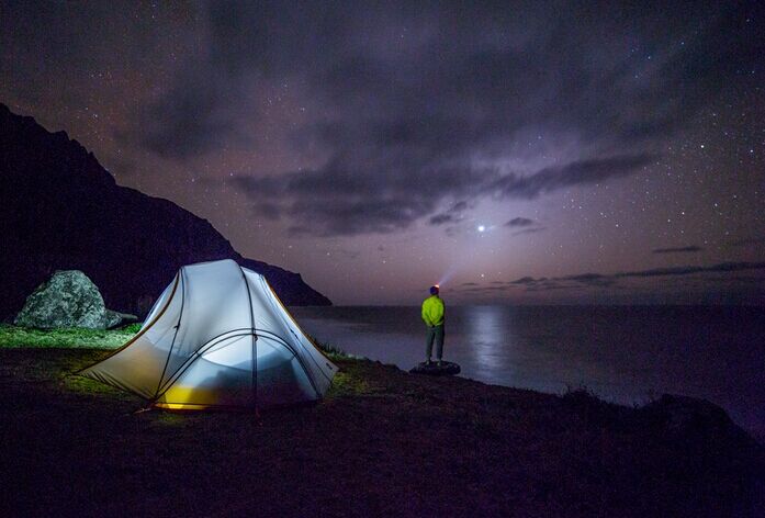 在戶外扎營點燈前有一點要特別注意,那就是將帳篷的外賬及內賬的門布全部拉好,不能有一點縫隙,因為晚上在戶外亮燈必然會引來大量的蚊蟲和部分冷血動物,如果它們冒犯進入了我們舒適的“小窩”那可就要掃了大家的興了。