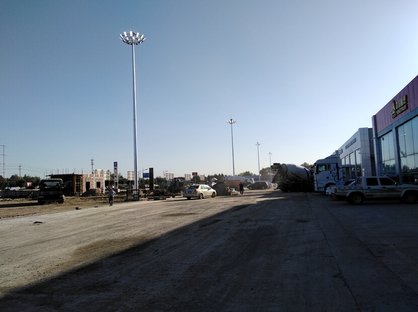 北京重卡4S店停車場(chǎng)照明工程,本次廣場(chǎng)場(chǎng)區(qū)共安裝15套12米中桿燈和6套20米